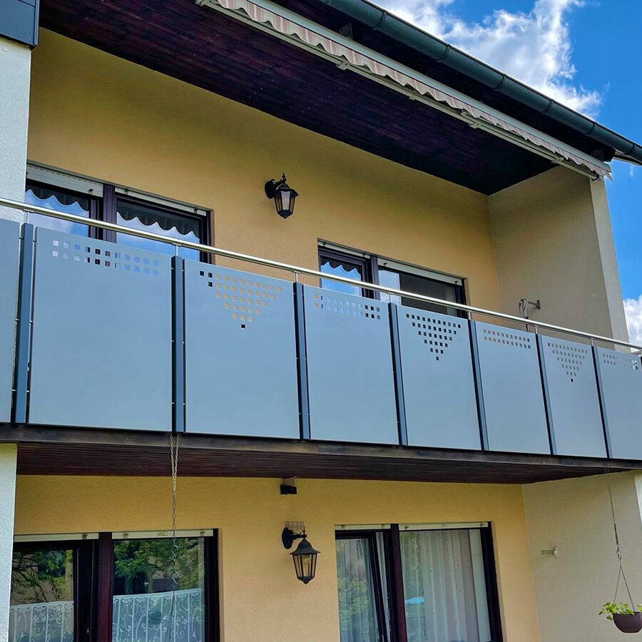 Geschlossene Füllungen dienen zum einen als Sichtschutz und zur Verkleidung des Balkons / der Terrasse an sich.