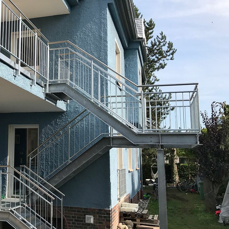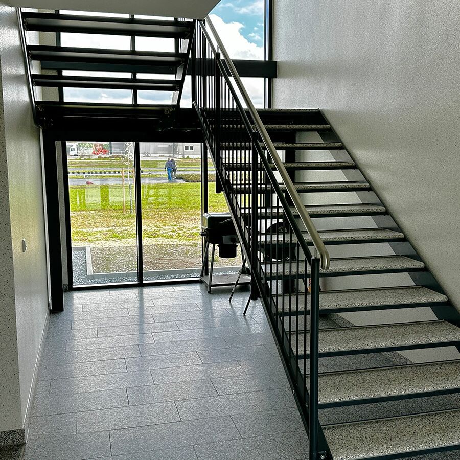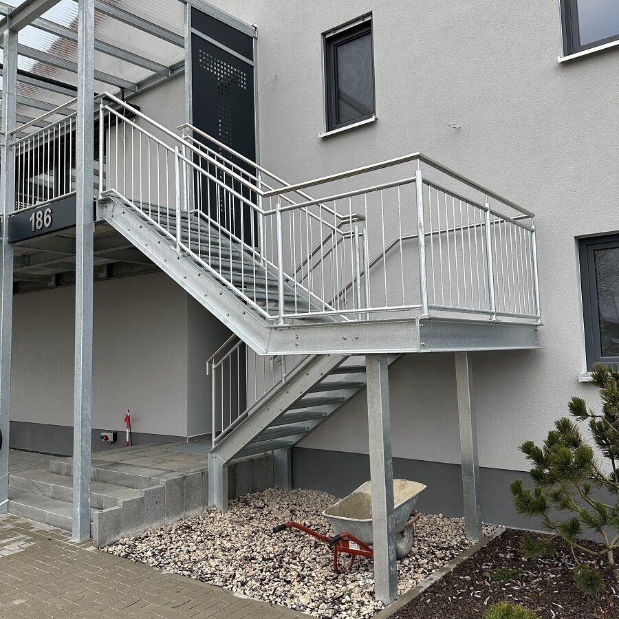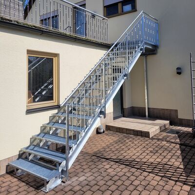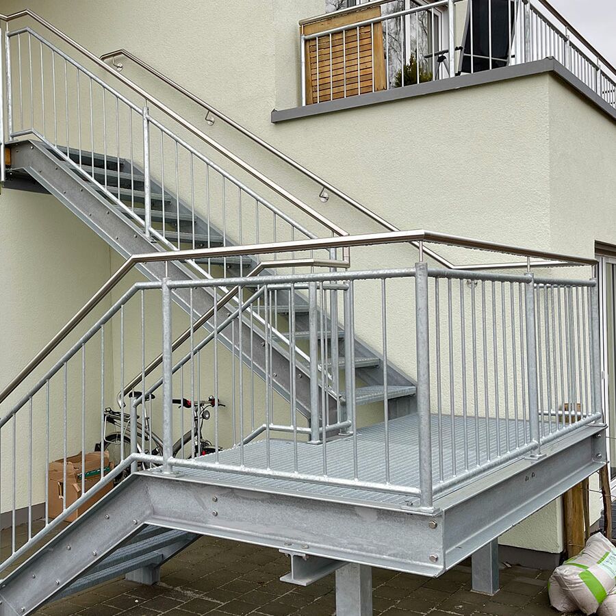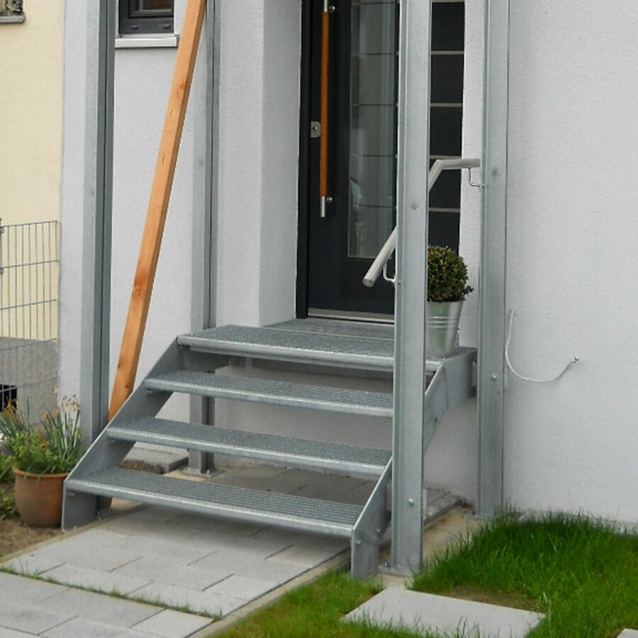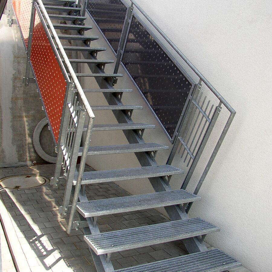 Für Außentreppen werden in den meisten Fällen Gitterroststufen verwendet, da diese die größte Auswahl bei den Rutschhemmungsklassen bieten und auch eine Typenprüfung für Fluchtwege haben.